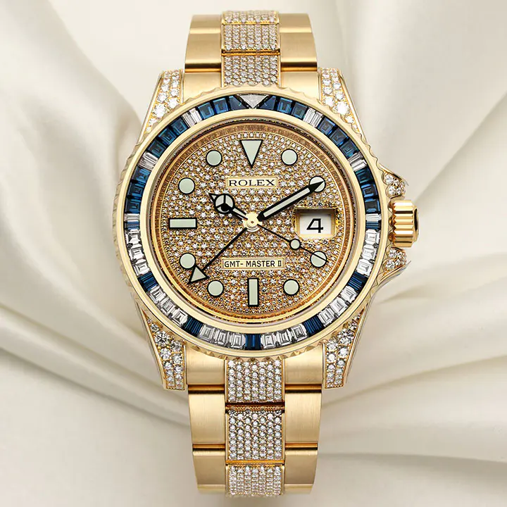 Rolex GMT-Master II 116758SA-78208 18k Yellow Gold Diamond & Blue Sapphire