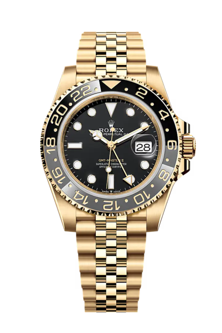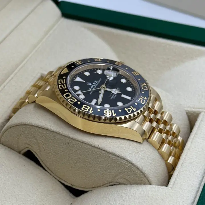 Rolex GMT Master ll Yellow Gold Black Dial Jubilee Bracelet Men’s Watch 40mm M126718GRNR